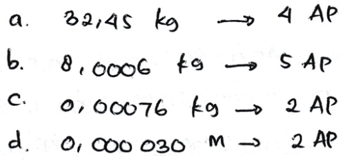 Tentukan banyak angka penting pada hasil hasil pengukuran berikut a 32