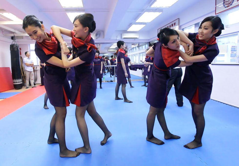 Hong Kong airlines flight attendants learning Wing Chun Kungfu World